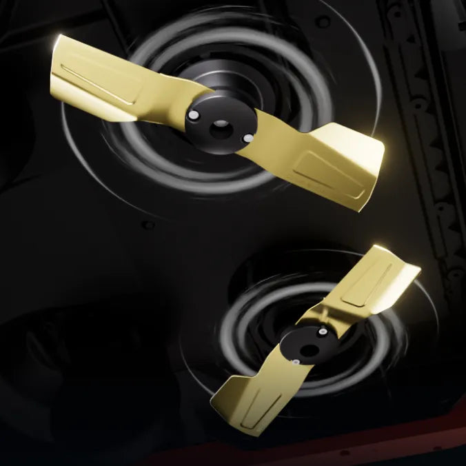 • Mower Discs  Blades Swappable:  Mulching Blade or Dual Decks with 5 Blades Each